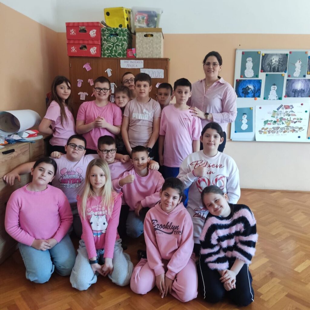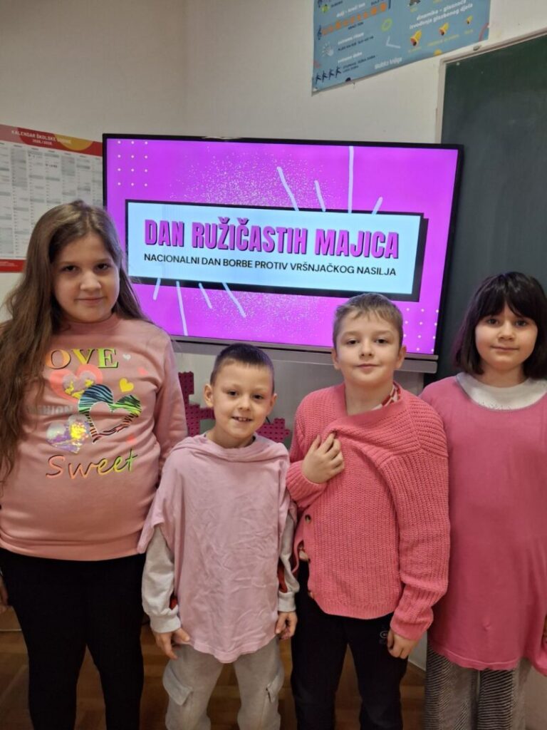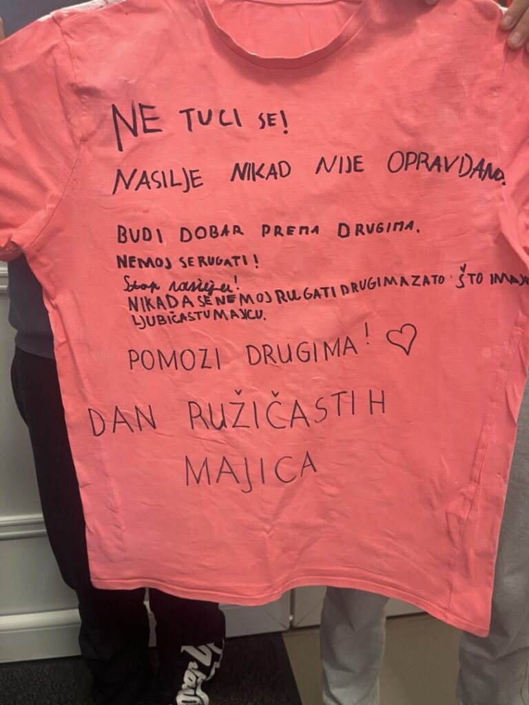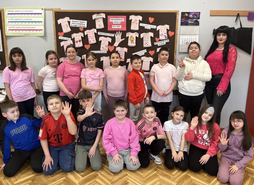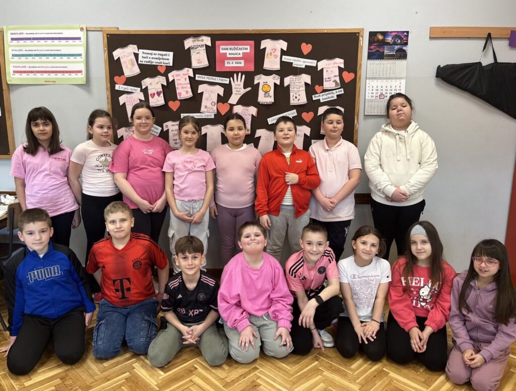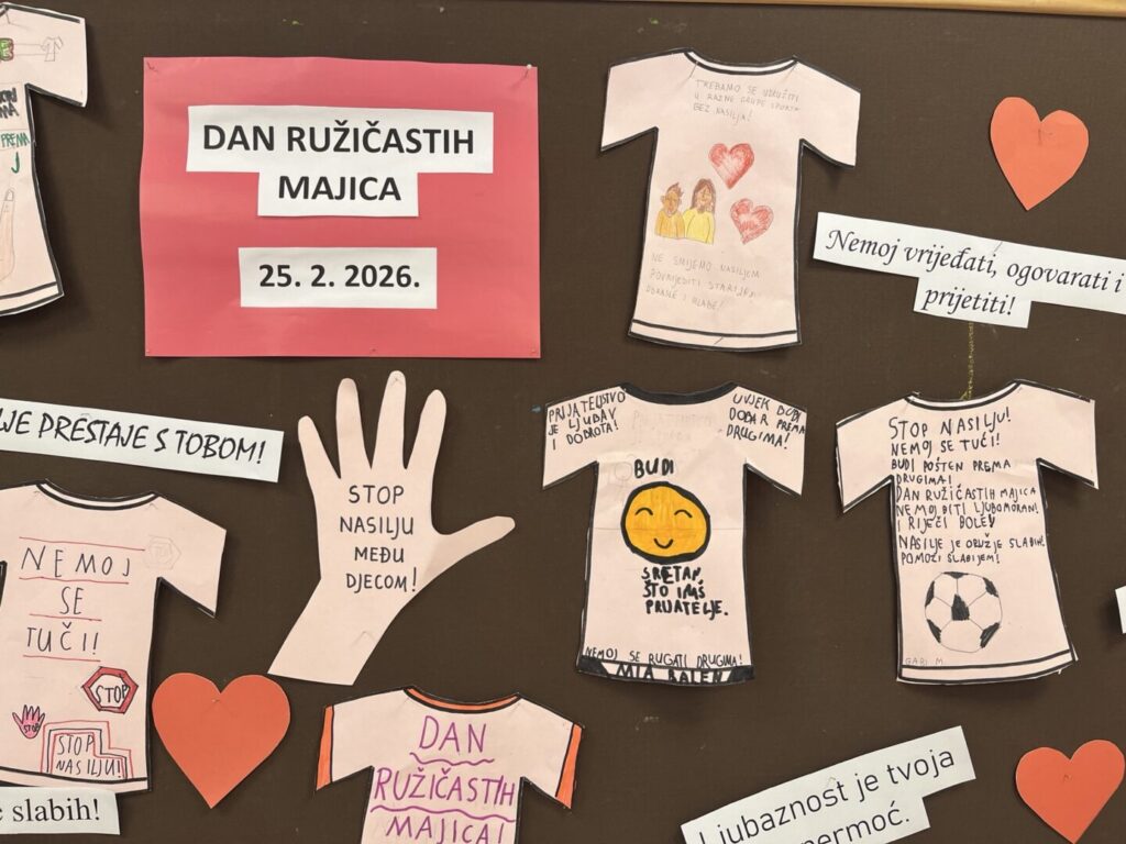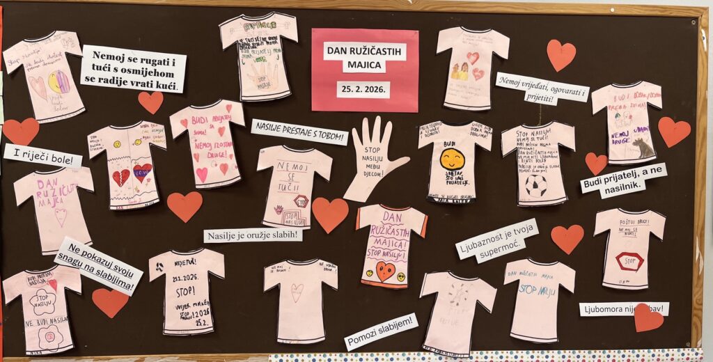 I naši učenici i učitelji ružičastom bojom majica obilježili su Dan ružičastih majica kojim se želi osvijestiti o sve učestalijim problemima vršnjačkog nasilja u školama.