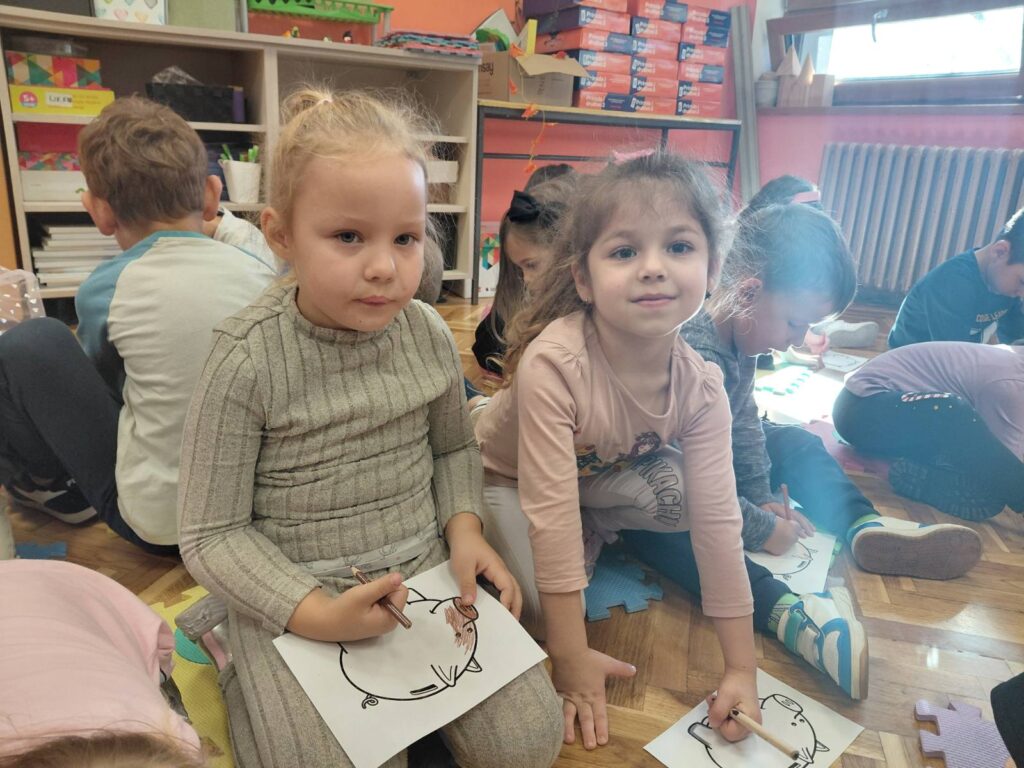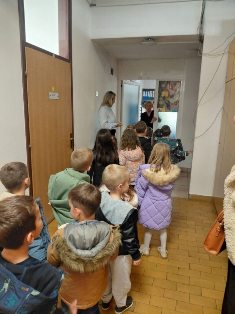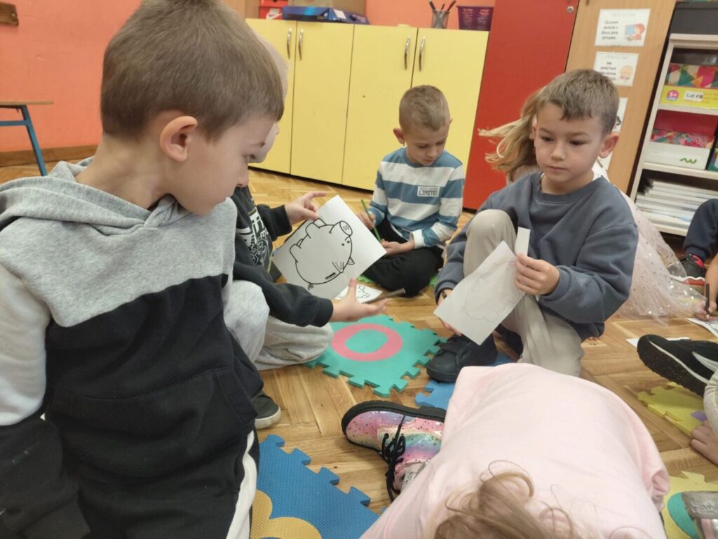Zajedno su proveli jedan školski sat hrvatskog jezika. Zajedno su slušali priču o novcu i razgovarali o štednji. Uočili su što sve veliki đaci u školi rade. Slušali ih kako pjevaju i čitaju. Crtali i bojali su svoje kasice prasice i nagradili nas svojom pjesmom. Nakon sata u 3.b razredu Mravići su svratili u informatičku učionici te čuli što se tamo uči a nakon toga ih je pozdravila ravnateljica. Upoznali su se i sa radom naše stručne službe te obišli školsku knjižnicu.