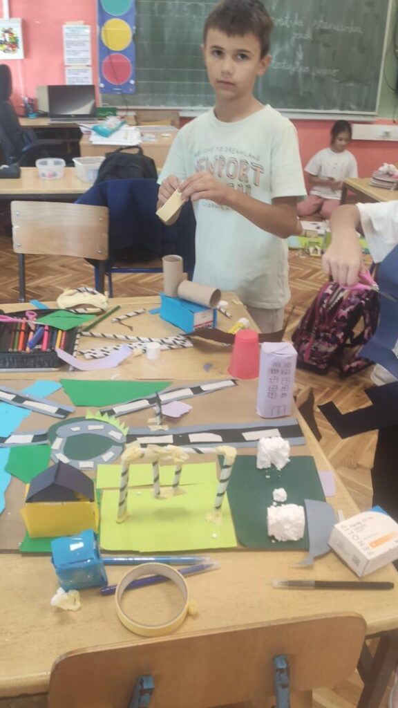 Sve što možete vidjeti u velikom holu naše škole rezultat je njihovog samostalnog rada: od ideje, preko prikupljanja materijala, pa sve do realizacije. Svaka maketa priča svoju priču i otkriva kako djeca zamišljaju idealan grad – pun boja, igre i međusobne podrške.