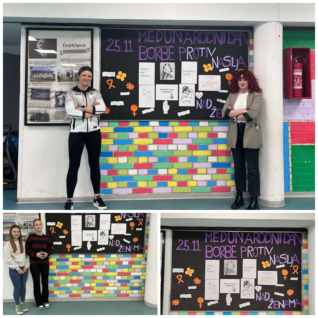 Tamara Pejić Ribičić, učiteljica njemačkog jezika u suradnji s učenicama 8.f razreda Evom Haliž i Paolom Pajeska uredila je edukativni pano podrške ženama u holu škole.