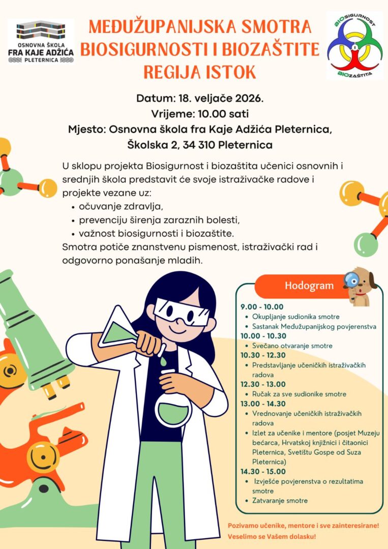S velikim veseljem i ponosom objavljujemo da je Osnovna škola fra Kaje Adžića Pleternica domaćin Međužupanijske smotre biosigurnosti i biozaštite – Regija Istok!