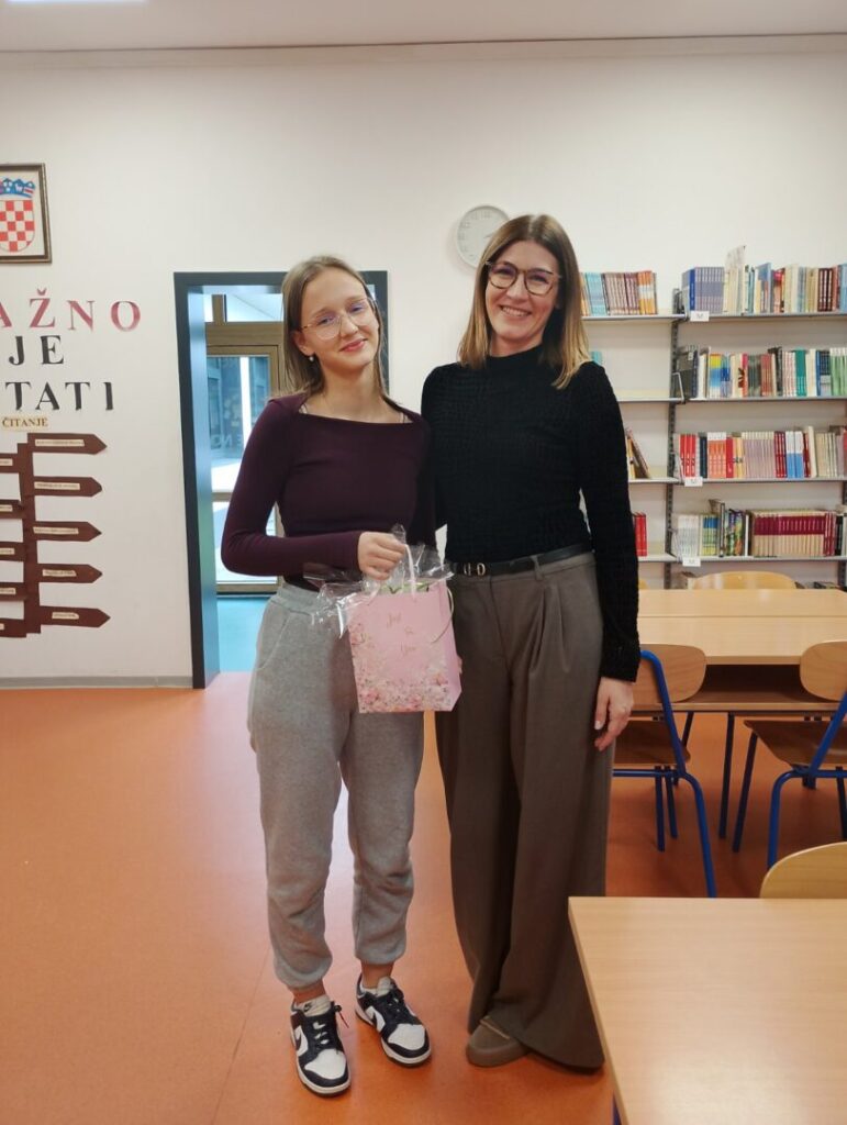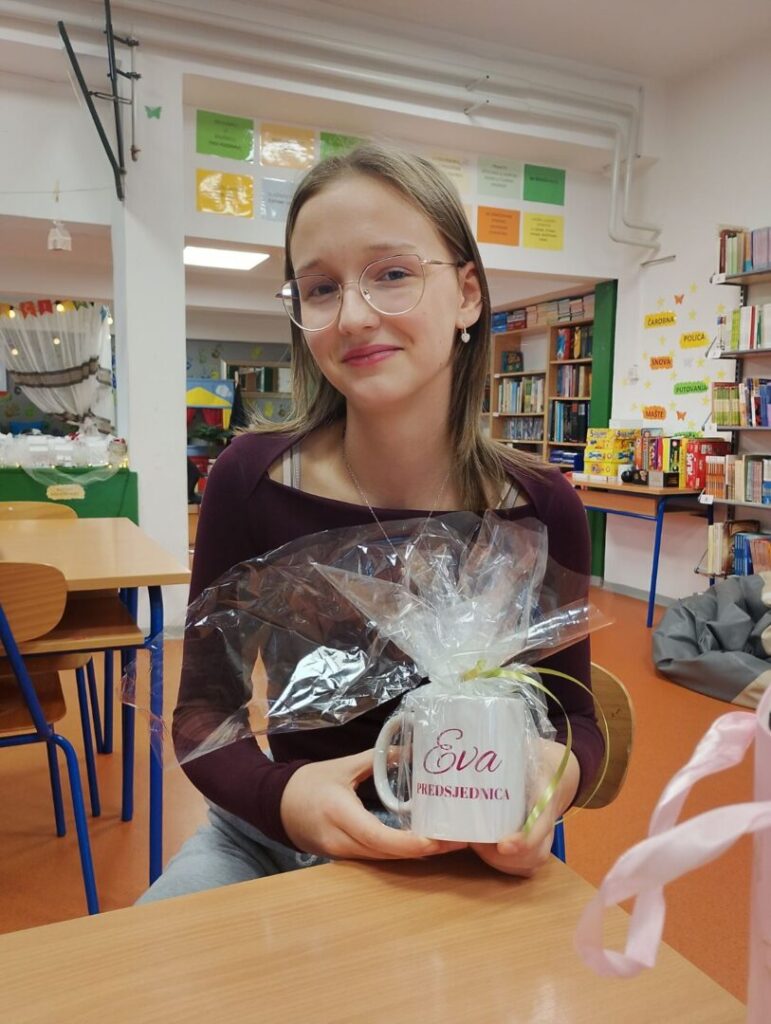 Naša ravnateljica Nikolina Rezo Lucić za Evu je danas pripremila i malo iznenađenje te joj izrazila podršku u njenim idejama i aktivnostima u Nacionalnom vijeću učenika Republike Hrvatske.