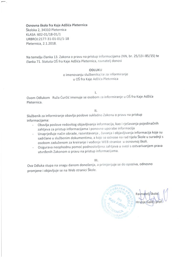 Pravo na pristup informacijama Pravo na pristup informacijama Godišnja izvješća o provedbi Zakona o pravu na pristup informacijama Items per page Godišnja izvješća o provedbi Zakona o pravu na pristup informacijama 9 Loading File Size Type Last Modified Download Zahtjev_za_pristup_informacijama 23 KB docx pro 17, 2024 Download Zahtjev_za_ponovnu_uporabu_informacija 23 KB docx pro 17, 2024 Download Zahtjev_za_dopunu_ili_ispravak_informacije_(2) 23 KB docx pro 17, 2024 Download Upisnik 25 KB docx pro 17, 2024 Download Odluka_o_imenovanju_sluzbenika_za_informiranje 67 KB jpeg pro 17, 2024 Download