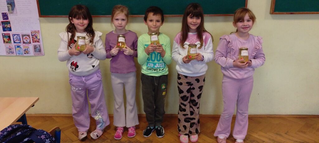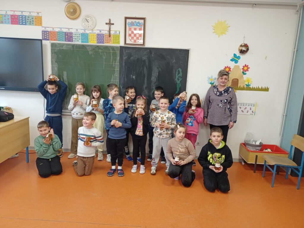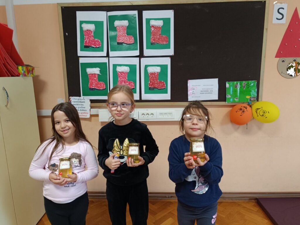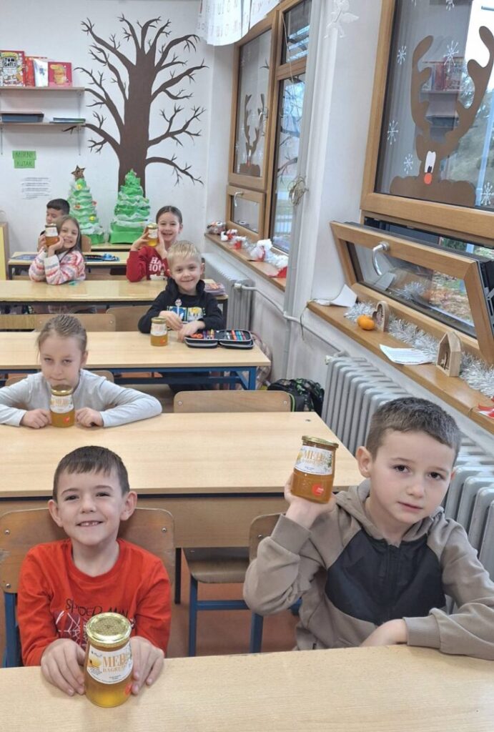Danas je našim učenicima prvih razreda podijeljen med s hrvatskih pčelinjaka u sklopu Školskog mednog dana koji se održao prvi puta 7. prosinca 2018.